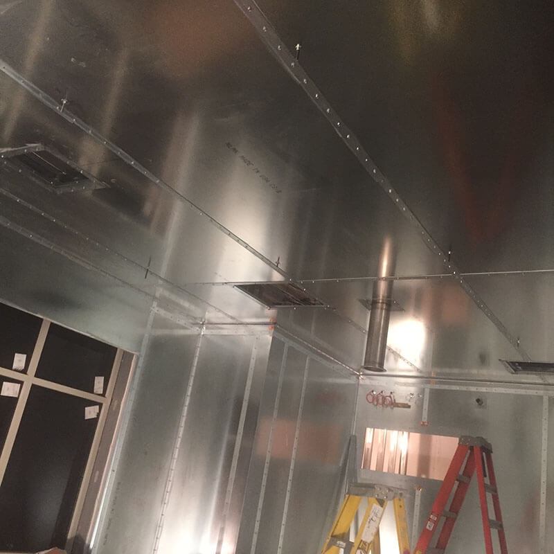 Spartan Shielding is an industry leader in the new construction of complete RF MRI rooms and performing existing room modifications. We begin by constructing our own unique paneling system utilizing galvanized steel, copper, aluminum or lead based on our customer requirements. These panels are secured by our tested install process using flats and screws.